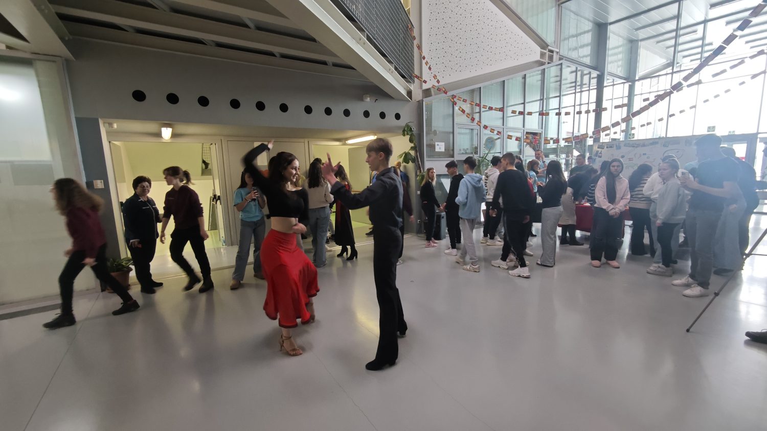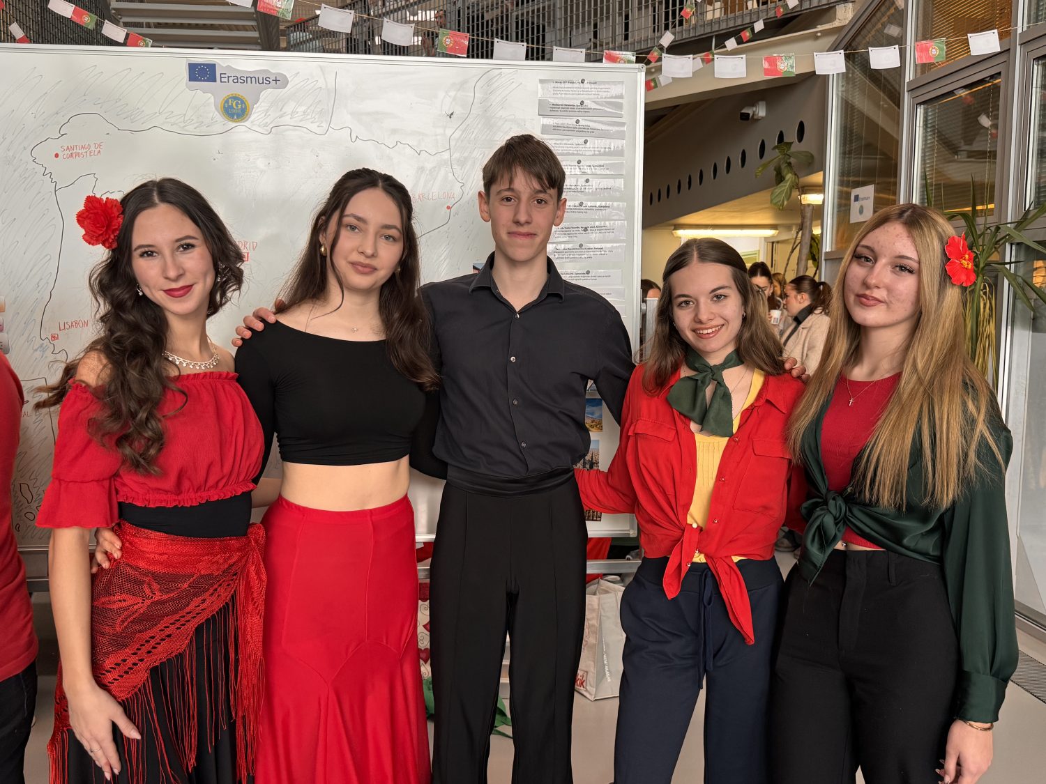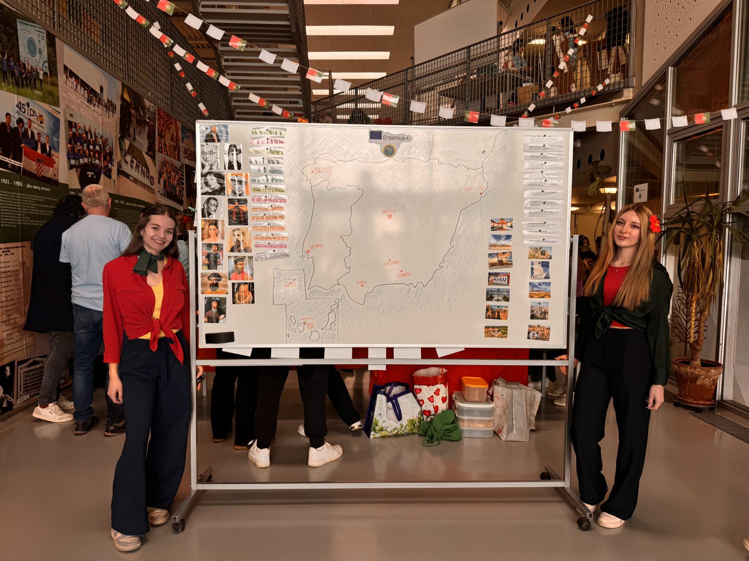 Profesori Maja Maček-Treščec i Zvonimir Treščec svoje su Erasmus mobilnosti najčešće provodili u Španjolskoj i Portugalu pa su moderirali prezentaciju tih država. Dio profesorskog tima bili su i profesori Kristina Bukvić, Igor Fulir i Marina Tomac-Rojčević. Učenici su pripremili memory igre, predmete tipične za te države, oslikali ploče motivima iz Portugala i Španjolske, izradili girlande, videe te pripremili jela za degustaciju. Bilo je tu tortilja, cheesecakea, pastaisa de nata, tapasa i bezalkoholne sangrije. Učenica Nadja Jandrašec obučena u španjolsku odjeću (crno-crvena haljina) kastanjetama je pozivala u španjolski kutak. Posebnu pažnju privukli su učenici i plesači Petra Sabolić i Gabriel Sebastian Sarapa koji su plesali paso doble. Petra i Gabriel plesu su podučili sve zainteresirane.