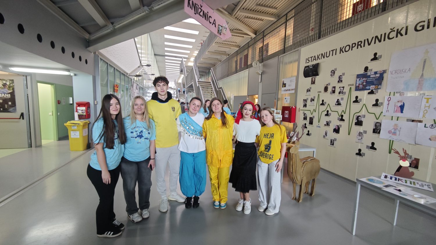 Na poljskom štandu mogle su se odigrati igre o poznatim Poljacima i atrakcijama Poljske te čuti zanimljivosti o Poljskoj. Pripremili su ih profesori Marko Horvat i Ivan Piskač. Štand o Njemačkoj bio je veoma posjećen jer su se nudili Brezel, Schwarzwald Torte, Haribo bomboni, Ritter Sport čokoladice i Leibniz Kekse. U košari s pitanjima nalazile su se poznate činjenice o Njemačkoj, a štand je bio ukrašen logotipovima njemačkih proizvoda (Made in Germany) i njemačkim zastavicama. Izložen je bio i rad učenika 2. a razreda – nogometni stadion s prikazom svih klubova Bundeslige. Štand o Njemačkoj je pripremila profesorica Marija Smoljo – Krapinec s učenicima.Island je bio predstavljen interaktivnim kvizom koji je pripremio profesor Danijel Kolarić. Osim toga, mogao se razgledati crni islandski pijesak i okamenjena lava. Profesorice Martina Grgac i Marina Njerš pripremile su prezentaciju Norveške, Švedske i Sjeverne Makedonije. Osim kvizova i interaktivnih igara koje su izradili učenici te brojnih predmeta iz Norveške (trolovi, vikinzi), izloženi su bili sobovi, vikinška kaciga, posteri i slike koje su također izradili učenici. Učenici koji su gostovali u Norveškoj i Švedskoj pomoću fotografija s tih mobilnosti pričali su o svojim iskustvima rada na projektima. Na ovim štandovima uz recepte bila su izložena jela (švedske okruglice, pašteta od tune, Lussekatt pecivo – švedski specijaliteti, norveška pašteta od lososa i jestive alge te makedonski ajvar i gravče na tavče) koja su se mogla degustirati. Što je fika i koje značenje ima za Šveđane, posjetiteljima su ispričali učenici uz švedski čaj. Učenica Marta Kiš, obučena u kostim sv. Lucije, nosila je Lucijinu krunu, pričala priču o blagdanu sv. Lucije i nudila švedsko pecivo. Također, na štandu se moglo naučiti i kako pisati runskim pismom. Na makedonskom štandu prikazan je običaj pranja rublja na koritu prema legendi o Biljani koja platno „beleše na ohridskimi izvori“. Učenica Karolina Điko povremeno je kao Biljana i zapjevala Makedonsko devojče uz harmoniku koju je svirao Dorian Čižmešija. Ako je u blizini bila profesorica Vesna Ščetinec, mogli ste čuti i pjesmu Biljana platno beleše.