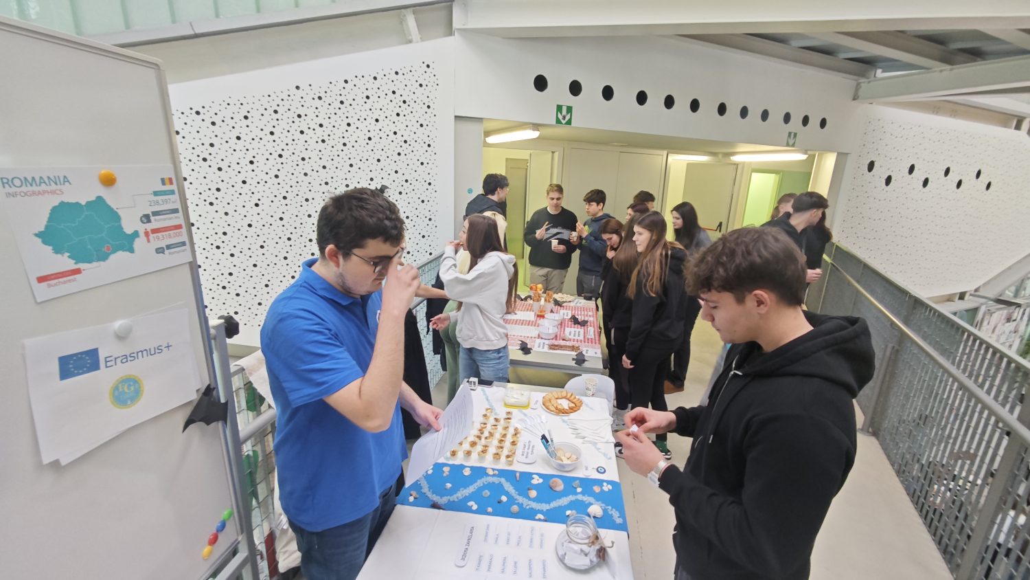 Profesori Zoran Pintarić i Marko Vargović mentorirali su radionicu o Cipru. Prostor multimedije bio je ispunjen mediteranskim mirisima jer su učenici pripremali tzatziki i prirodnu limunadu, a organizirali su i kviz te predavanje o tome što su naučili tijekom mobilnosti na Cipru. Profesorice Sanja Suton i Ana-Marija Martan zajedno s učenicima predstavile su Grčku i Rumunjsku. Na njihovu štandu mogli ste razgovarati s grofom Drakulom, vidjeti njegov dvorac te poznate grčke stupove. Za degustaciju pripremljene su rumunjske delicije saratele, zacusca i cornulete du nuca, a od grčkih tzatziki, grčki jogurt s medom i orašastim plodovima. Uz pomoć delfijskog proročanstva mogli ste čuti o svojoj budućnosti, pročitati mudrosti na grčkom zidu mudrosti, odigrati mitološki memory te isprobati jezične zavrzlame. Učenici su naučili prisutne kako se izrađuje tradicionalni grčki simbol mati i rumunjske narukvice u bojama. Bilo je tu još točno-netočno pitalica u kojima je bilo prigode da naučimo nešto novo i zanimljivo o tim dvjema državama.