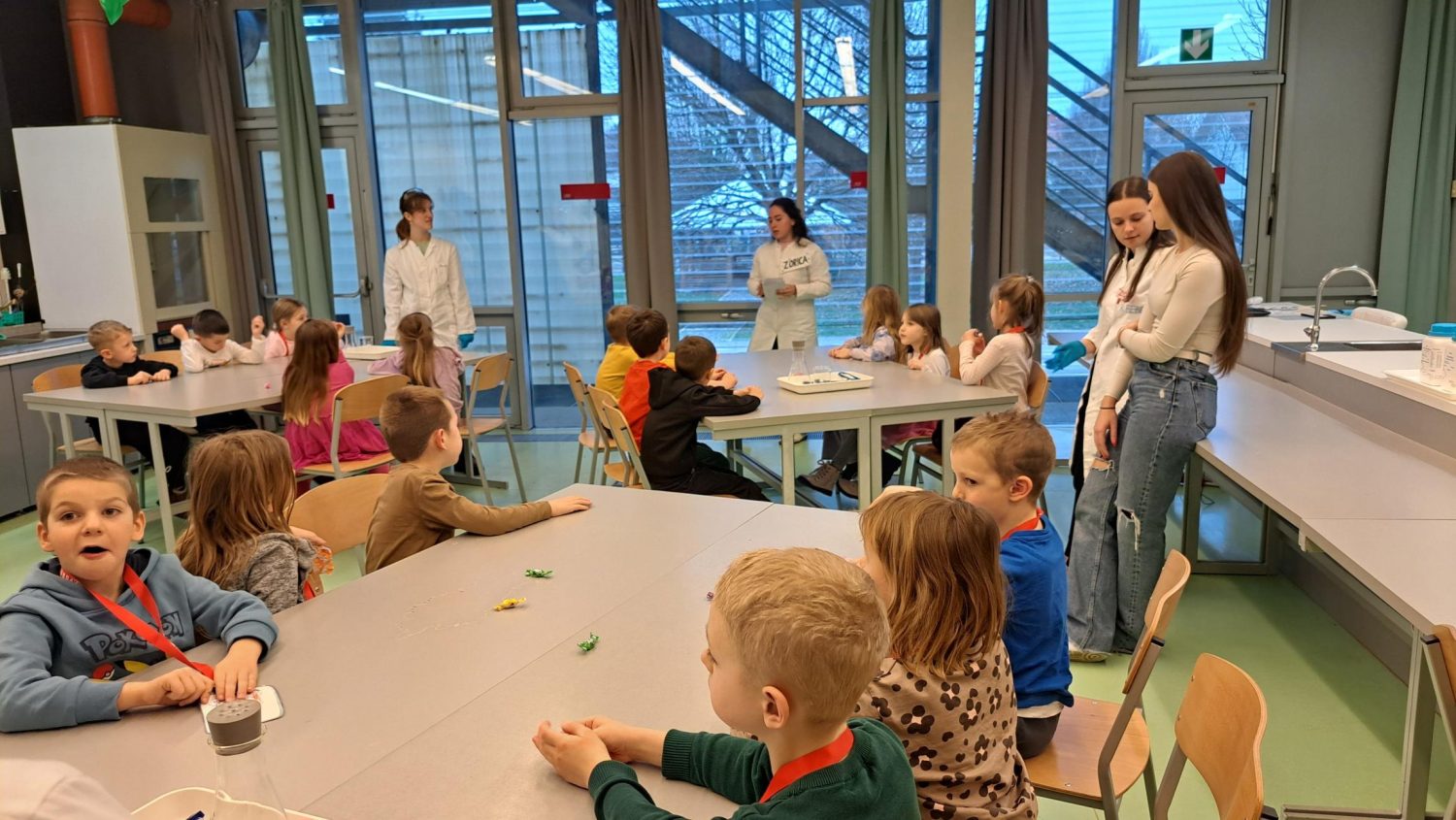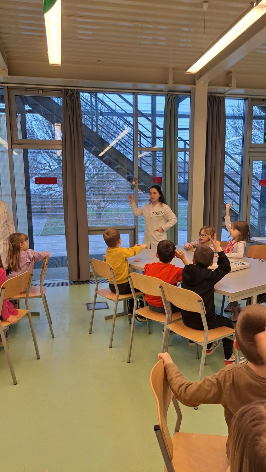 Nakon čitanja sudionici su se uputili u učionice gdje su ih dočekale gimnazijske „Zorice“ i profesorice Mišela Lokotar i Ines Sertić. Ovoga puta „Zorice“ su pripremile zabavnu zagonetku čime su dodatno potaknule na razmišljanje i interaktivno sudjelovanje djece. Nakon toga gimnazijalke su demonstrirale pokus koji je rješavao problem iz priče, tj. otkrivanje pojma semafora. Djeca su s oduševljenjem pratila pokus povezujući priču s praktičnim iskustvom te su tako razvijala logičko i kreativno razmišljanje.