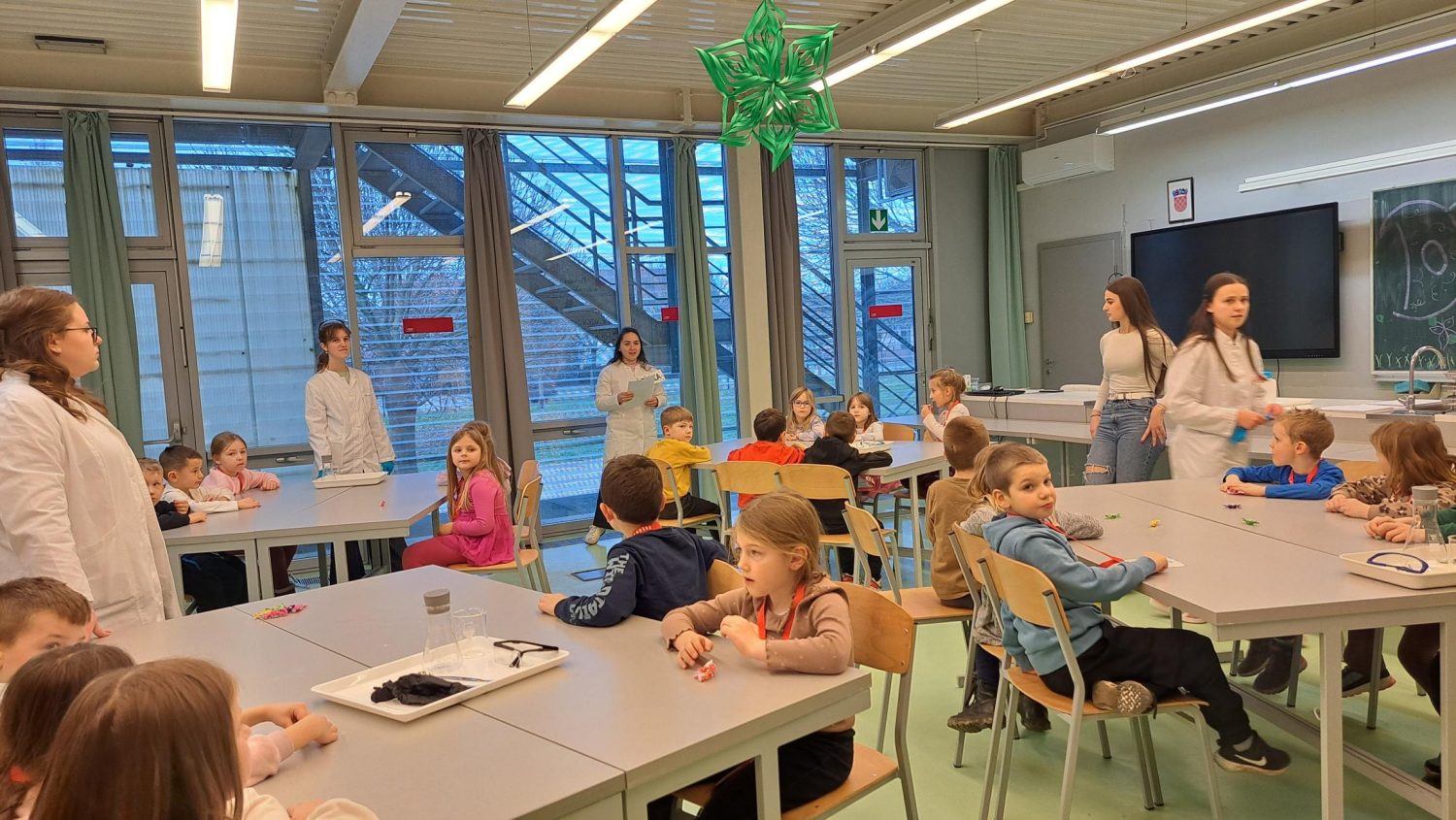 Vrtićarci su nakon kemijskog dijela sudjelovali u završnom dijelu susreta koji su osmislile odgajateljice skupine „Kamenčići“ Sunčica Šanta Hanžeković i Zrinka Šupe. Zajedno su igrali memory, uparivali oblike sa znakom, povezivali početni glas i slovo te rješavali zadatak „Napiši riječ iz priče – semafor“. Djeca su se zajedno s gimnazijalkama i učenicima veselila igri učeći uz smijeh i zabavu.